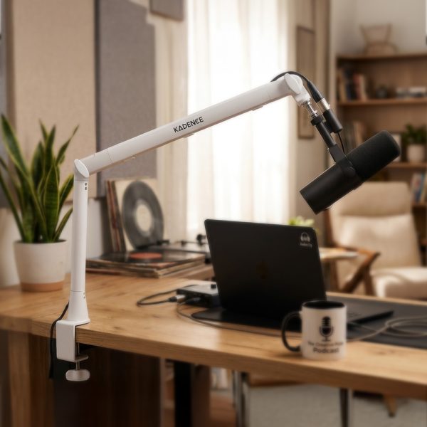 Kadence NB55-WH Professional Microphone Boom Arm Stand | Heavy-Duty Steel Build & 1.5kg Load Capacity | 360° Adjustable Desk Mount | For Podcasting, Streaming & Studio Recording