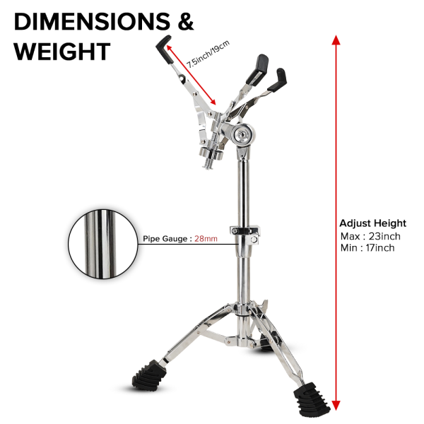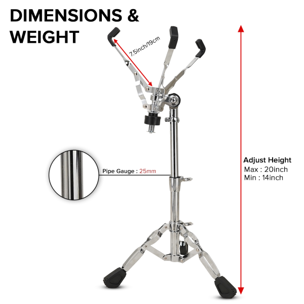 Heavy-duty professional snare stand built for touring, stage performances, and studio recording, offering maximum stability, precision adjustment, and reliable support