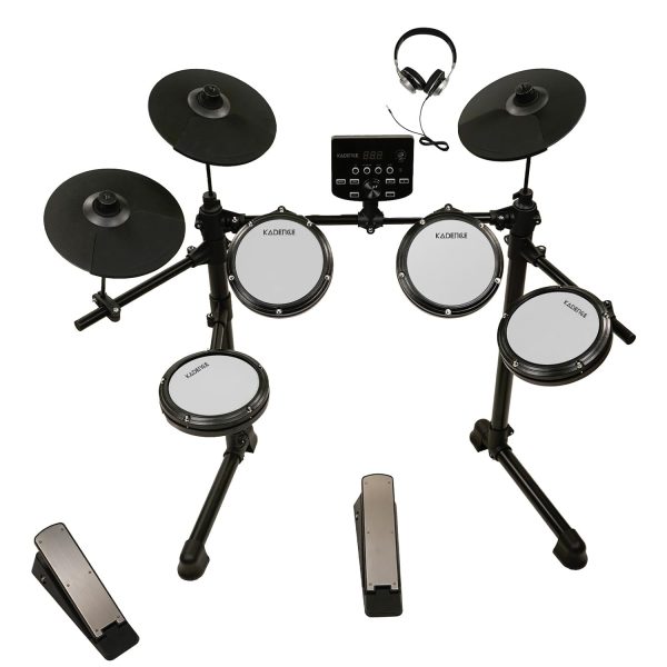 Kadence 7-Piece Electronic Drum Set – Beginner Electric Kit with Mesh Pads, Headphones, Sticks, Pedals, Bluetooth & LED Display (MD200A)