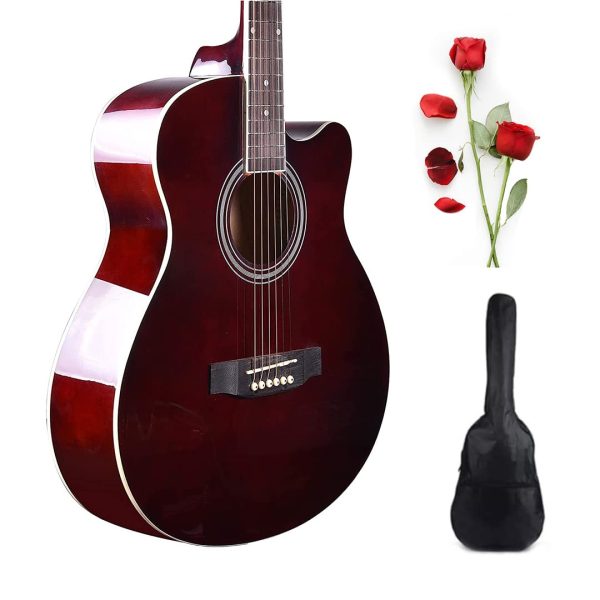 Frontier Series | Wine Red 40″ Acoustic Guitar with Red Rose Valentine’s Gift + a Free Guitar Online Learning Course.