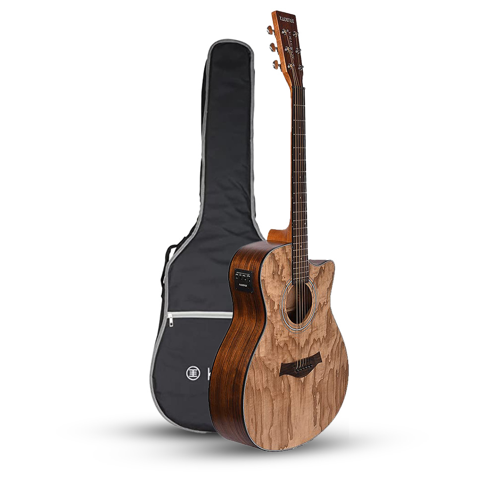 Kadence Slowhand Jumbo Semi Acoustic Guitar(Sh04) – Premium Black Spruce Wood with Heavy Padded Bag, Guitar Cable , Pro Capo, Set Of Strings , Picks with Learning Course