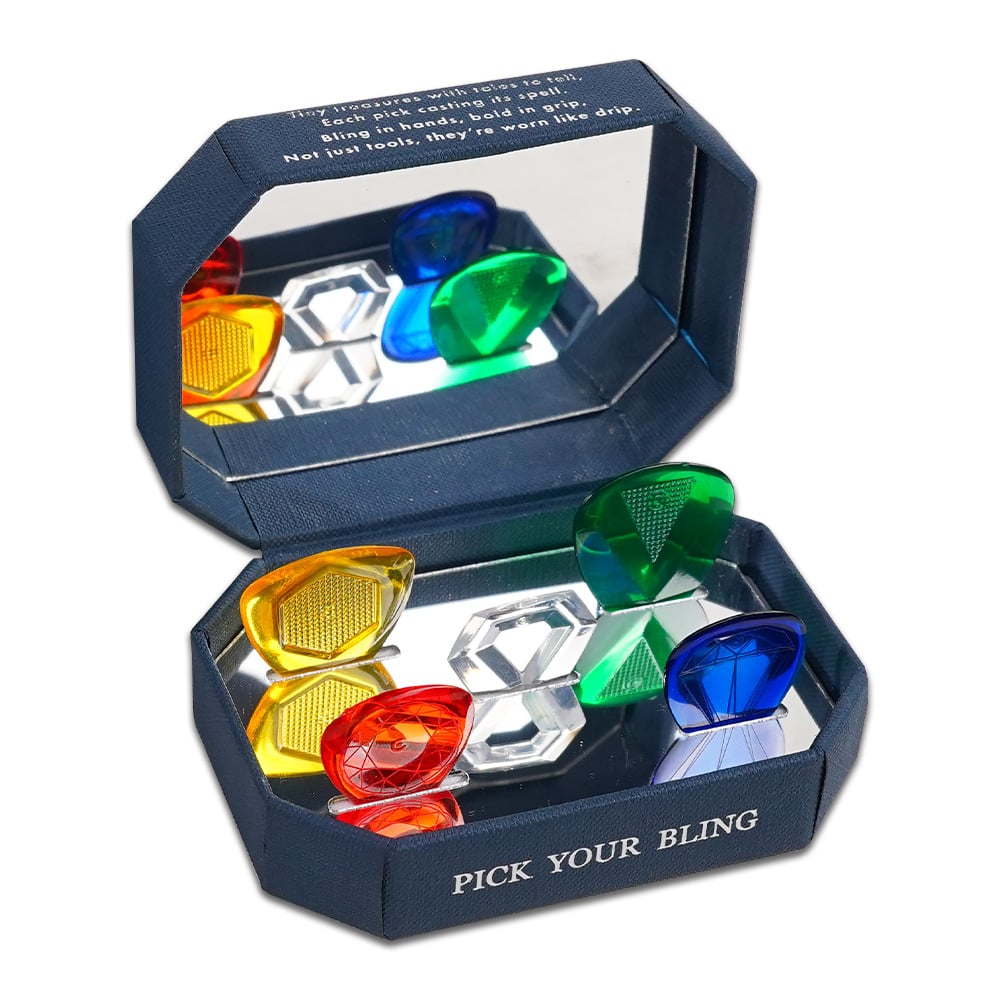 Jewellery-Style Premium Design – Eye-catching multi-color pick set with jewel-inspired facets, crafted for players who want a stylish, stage-ready accessory that looks as good as it performs.