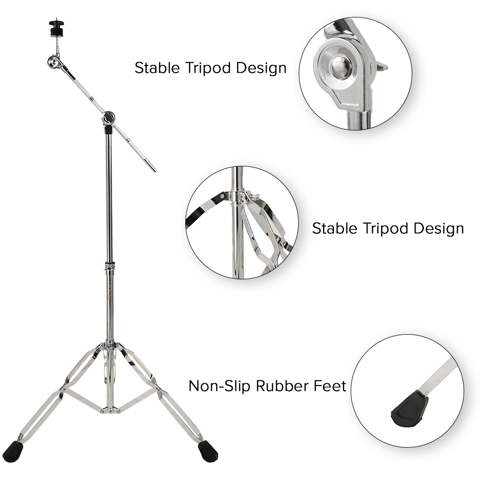 Adjustable Boom Arm for Flexible Positioning – Features an extendable boom arm with angle adjustment, allowing drummers to position cymbals exactly where needed for комфорт and performance.