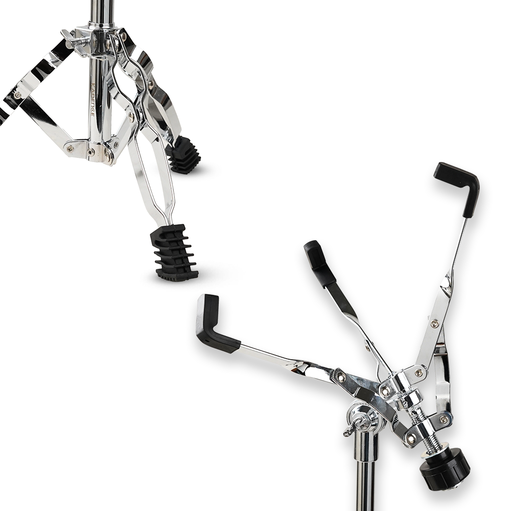 Constructed from lightweight yet strong steel with a polished chrome finish, this snare stand offers long-lasting durability and resistance to wear. The double-braced tripod legs and reinforced joints provide excellent stability, while rubber feet and basket grips ensure secure drum support during practice or performances.
