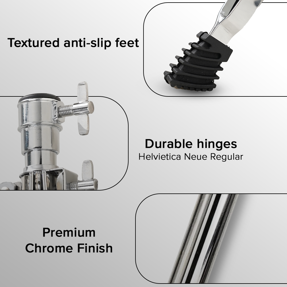 | Finish Type | Polished Chrome-Plated Finish | Stability Support | Tripod Legs for Maximum Stability |