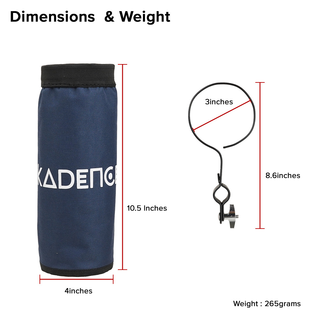 Kadence DSTK-BKTBLU Drumstick Holder Bucket | Collapsible, Heavy-Duty Polyester Pouch | Open-Top Design with Stand-Mount Clamp | Holds up to 10 Pairs of Sticks