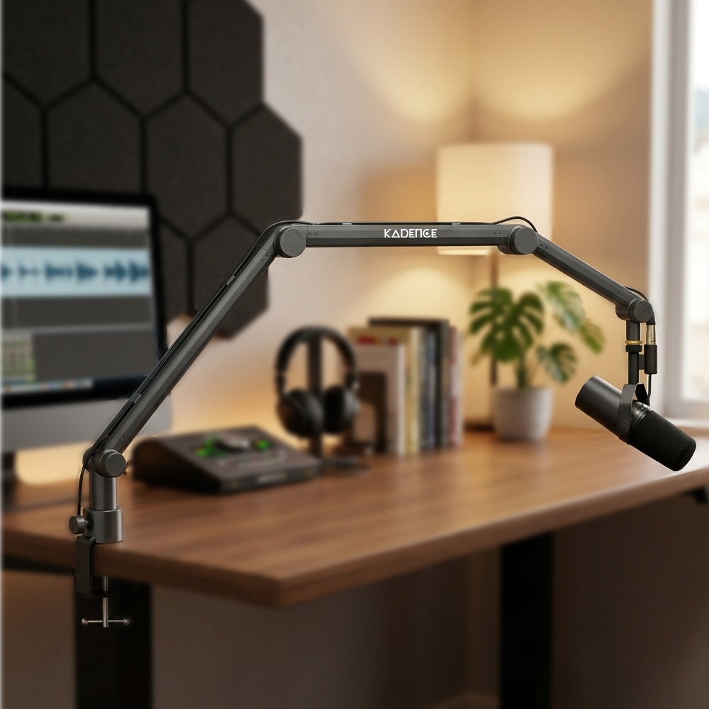 Kadence NB49-BK Professional Microphone Boom Arm | Internal Spring Design & Clean Cable Management | 360° Adjustable Desk Mount | For Streaming, Podcasting & Studio Setup