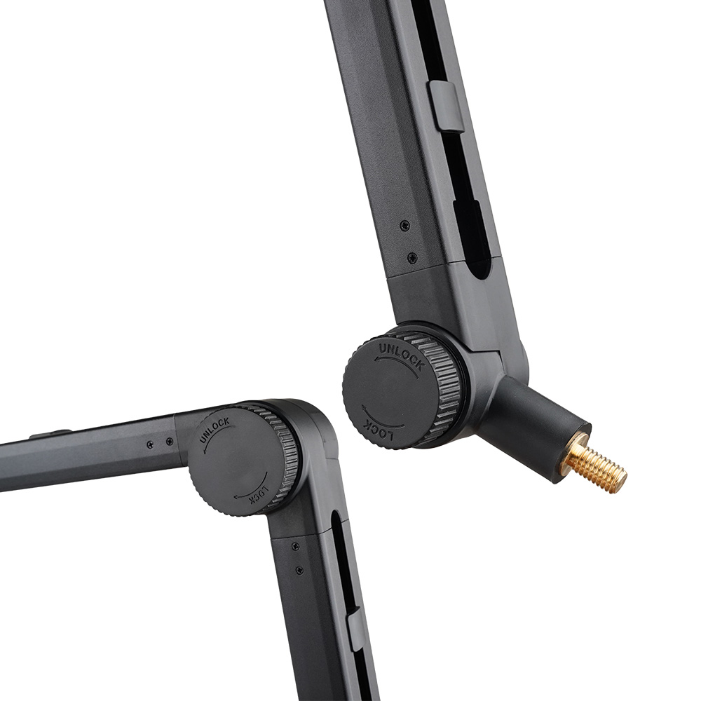 | Boom Arm Adjustment | 120° Lower Joint and 180° Middle/Upper Joint Adjustability | Stand Metal Gauge | Reinforced Square-Tube Metal Frame |
