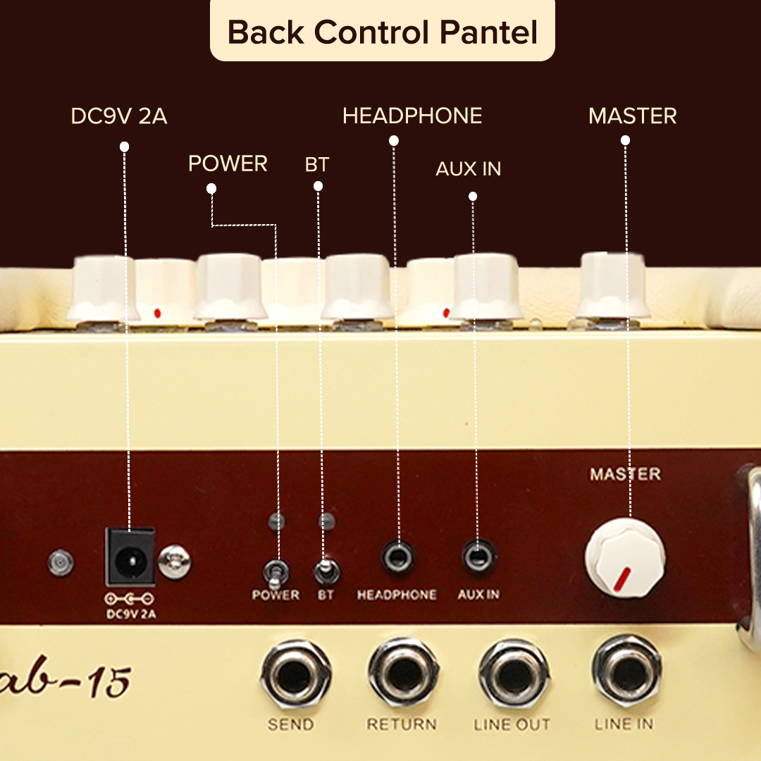 Kadence 15W Guitar Amplifier – Up to 20W Output, Bluetooth Connectivity, High-Quality Clean Sound, Aux Input, EQ Controls.