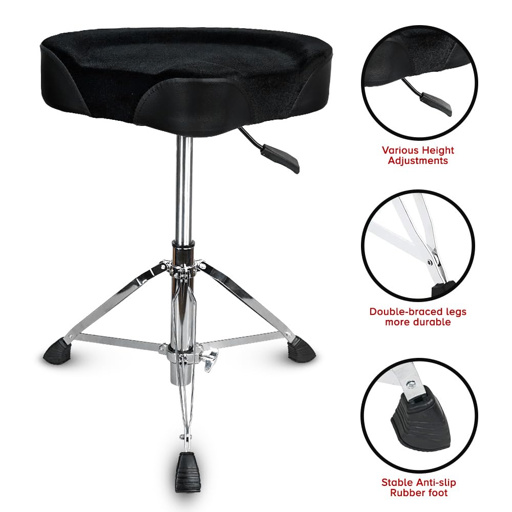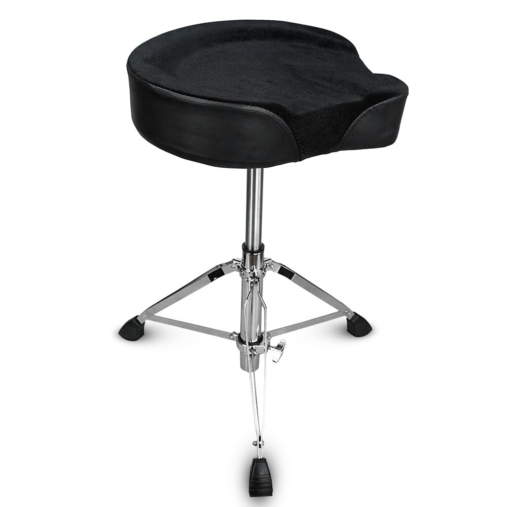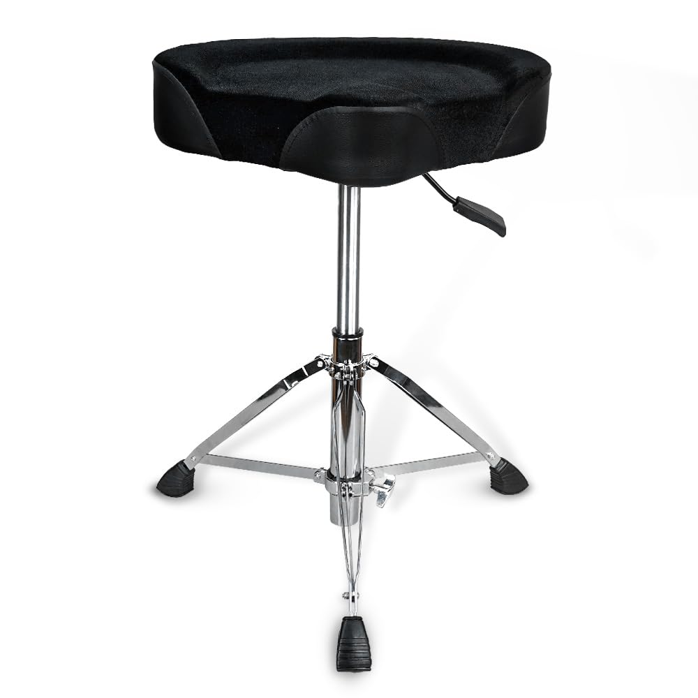 Kadence Hydraulic Drum Throne – Adjustable Height Drum Seat with Padded Velvet Cushion & Stable Tripod Base – Heavy-Duty Stool for Drummers, Studio & Live Performance – Motorcycle Style Stool