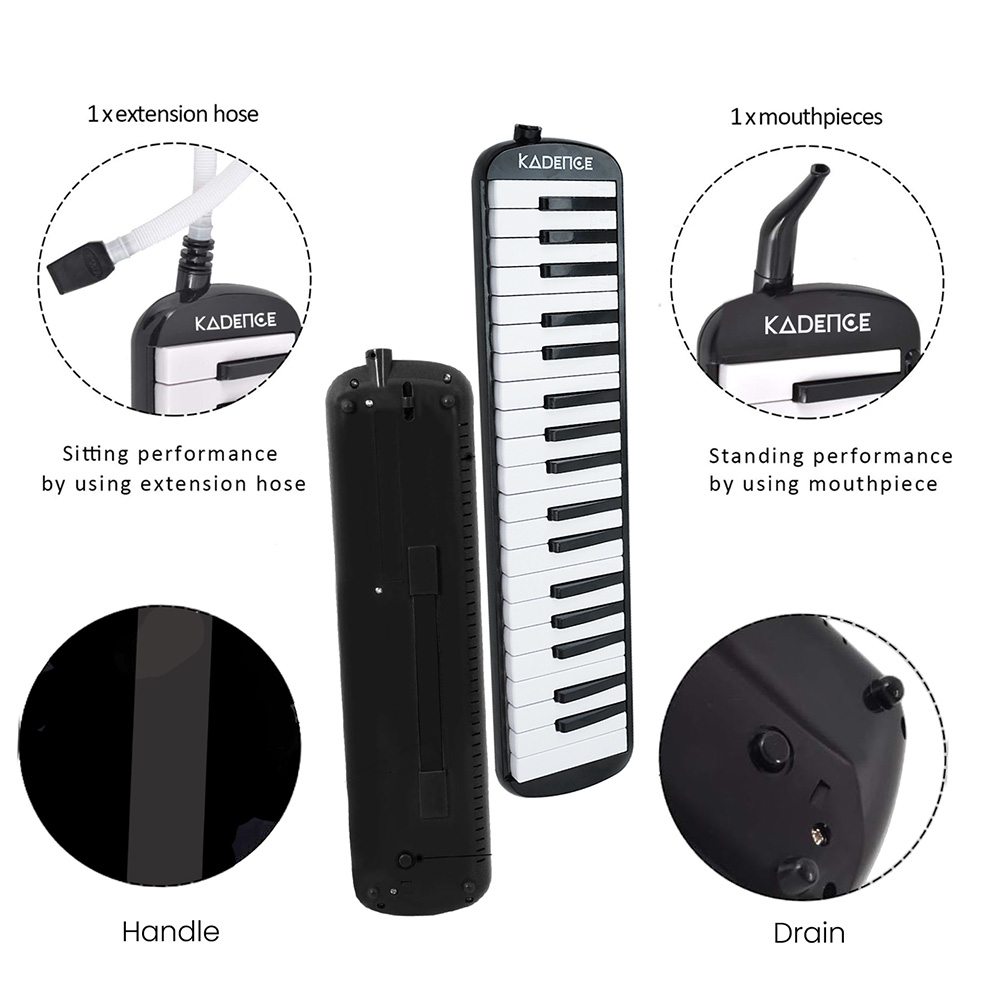 Kadence MEL-37BK 37-Key Melodica | ABS Body | Stainless Steel Plate | Dual Mouthpiece | Includes Case