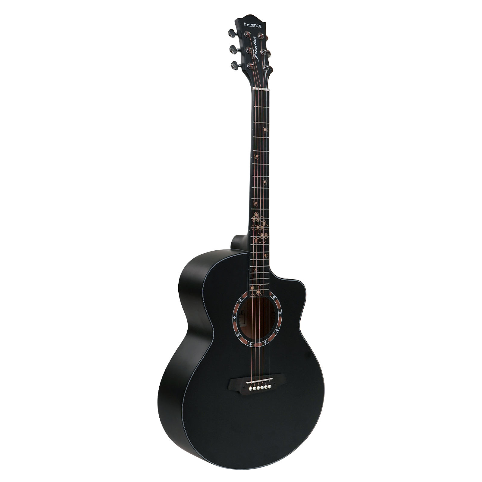 Kadence FR77BK Frontier 40″ Acoustic Guitar | Grand Auditorium Cutaway | Special Fret Inlays | Comes with Bag