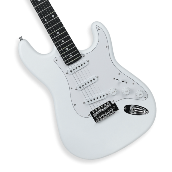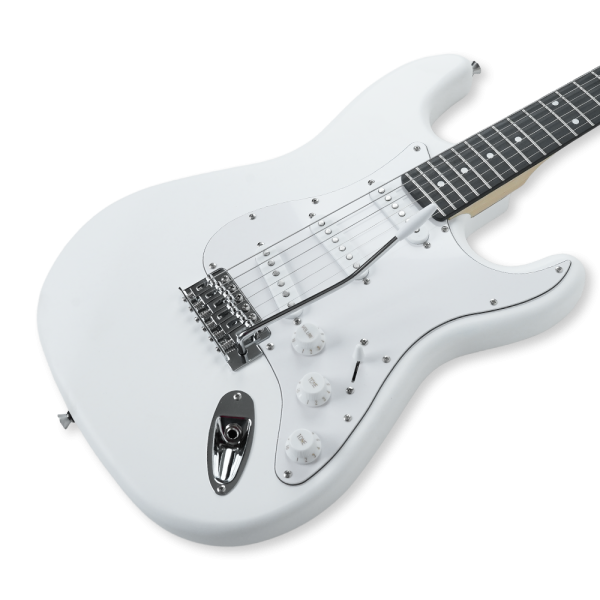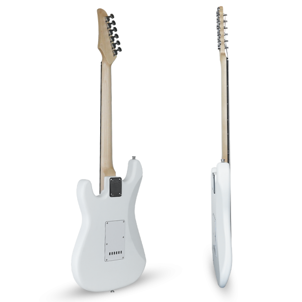 This Strat-style electric guitar is ideal for beginners and intermediate players who want one versatile instrument for blues, rock, funk, pop, indie, and fusion. It suits musicians who enjoy clean, glassy tones, expressive lead playing, and dynamic rhythm work. The comfortable, ergonomic body makes it easy to practice for long sessions, while the single-coil pickups provide clear note separation and responsive touch.