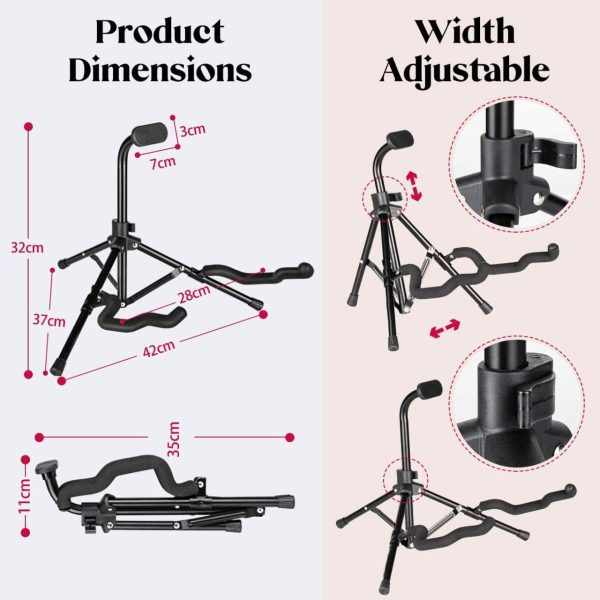 Kadence Travel Guitar Stand, Acoustic Electric Guitar Floor Stand, A Frame Foldable Lightweight Guitar Holder Adjustable for Bass, Cello, Mandolin, Banjo, Ukulele (Foldable Guitar Stand)