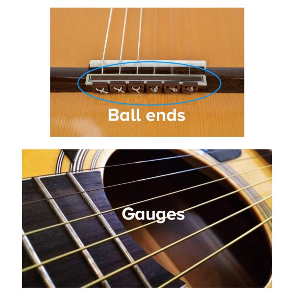 • Gauges: Thicker strings are louder but harder to play; thinner ones are easier but softer.